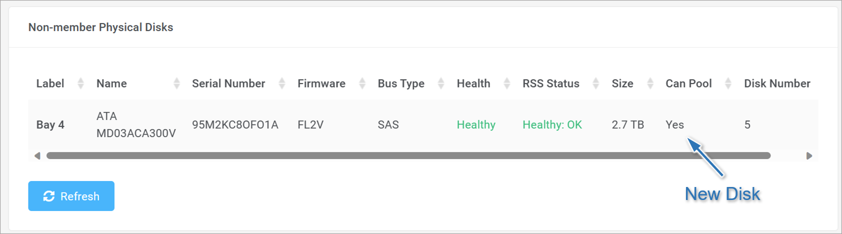 Step 3: Insert a new unformatted disk into the ECA. It will appear under the Non-member Physical Disks list.