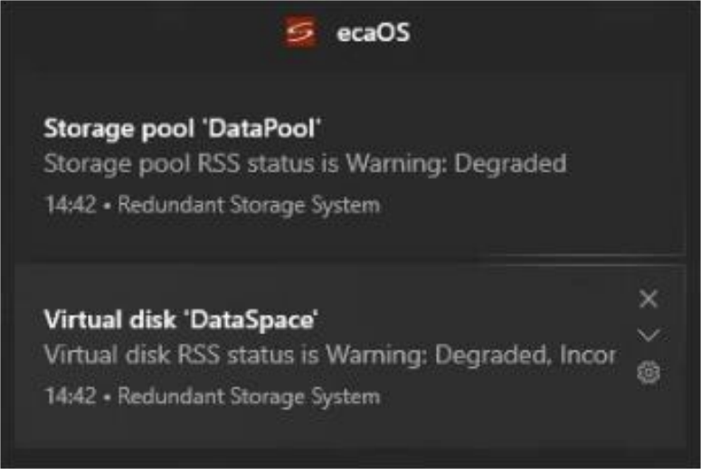 In the event of of HDD failure, ecaOS will notify via:
