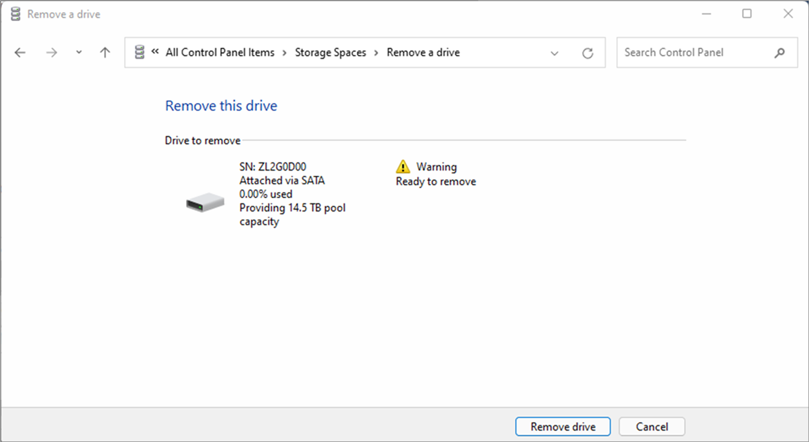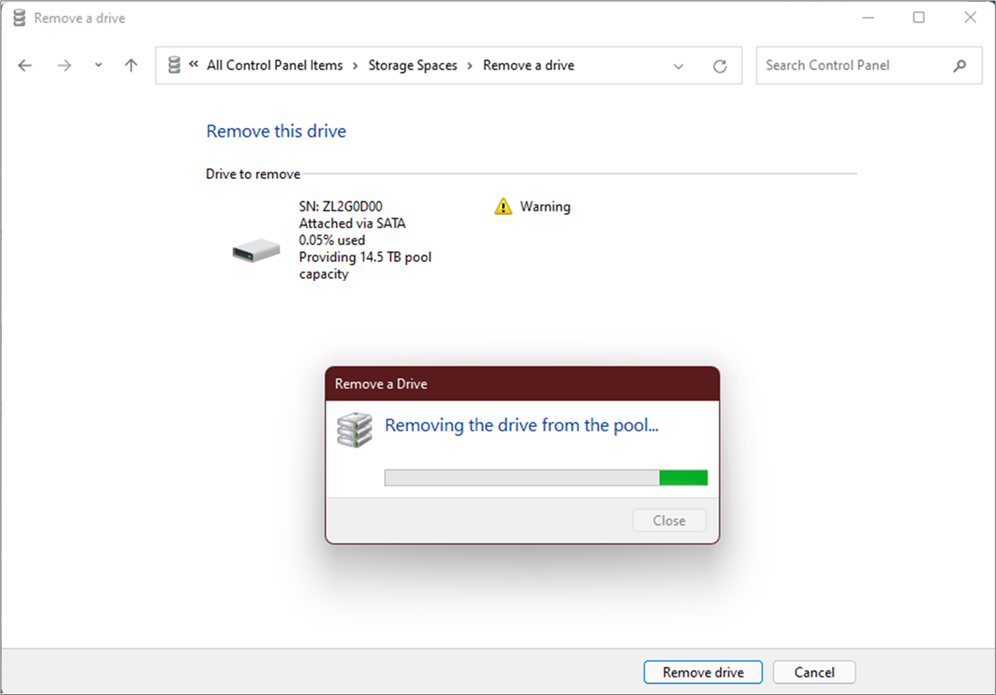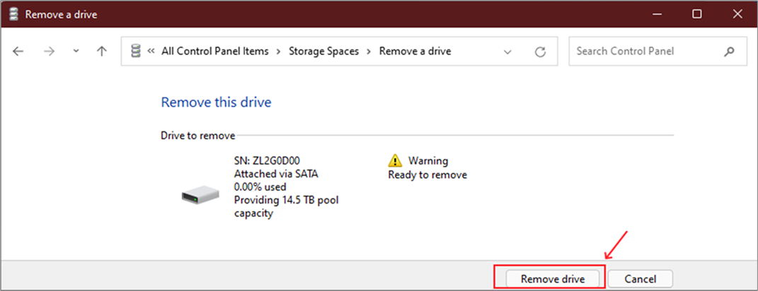 Step 15: Click ‘Remove drive’ to remove the HDD from RSS.