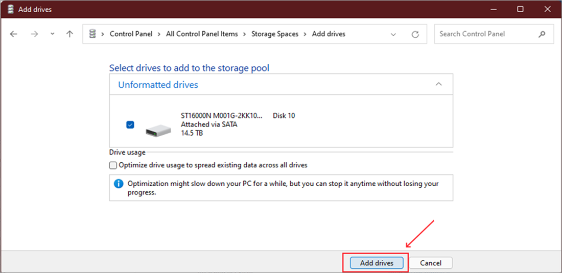 Step 9: Click ‘Add drives’.