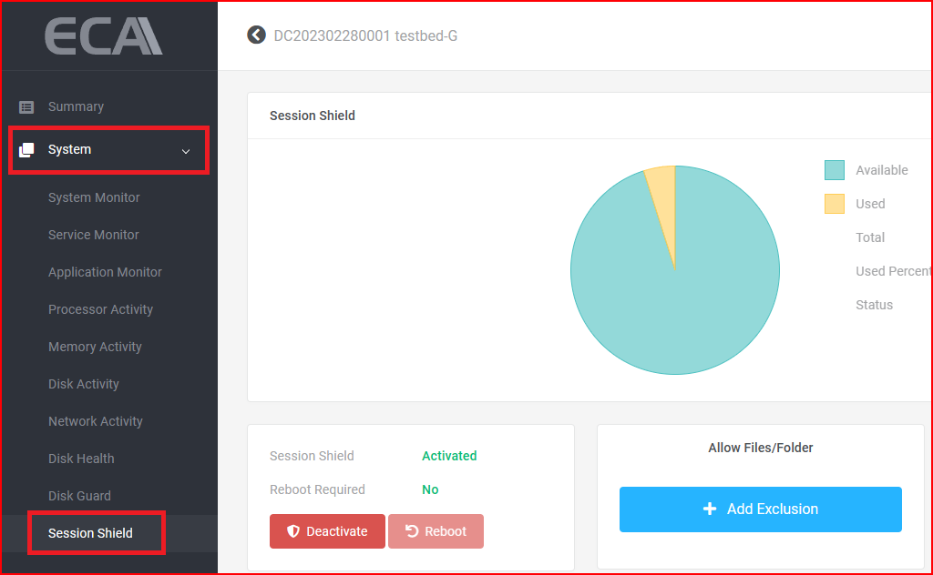 Step 1: In the ecaOS dashboard, navigate to System > Session Shield.