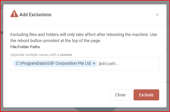 Step 2: Click the "+ Add Exclusion" button.