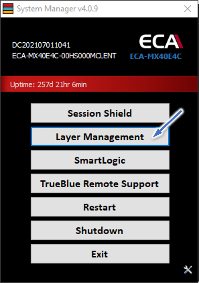 Step 5: ECA will reboot and boots into Layer Manager.