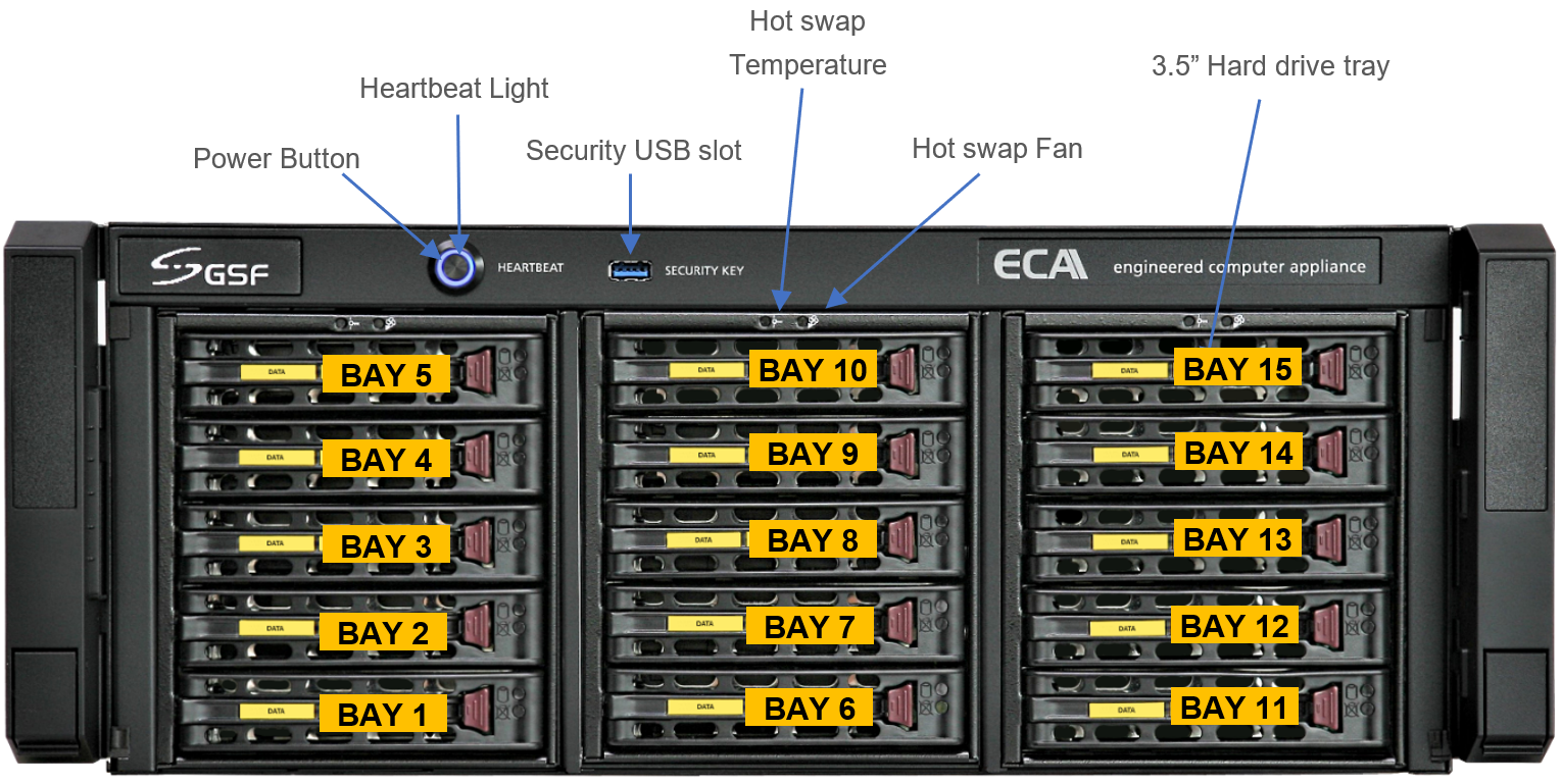 | Bay 1 - Bay 15 | hard Disk Drive Bay 1 to bay 15. Total 15 bays for FX model. |